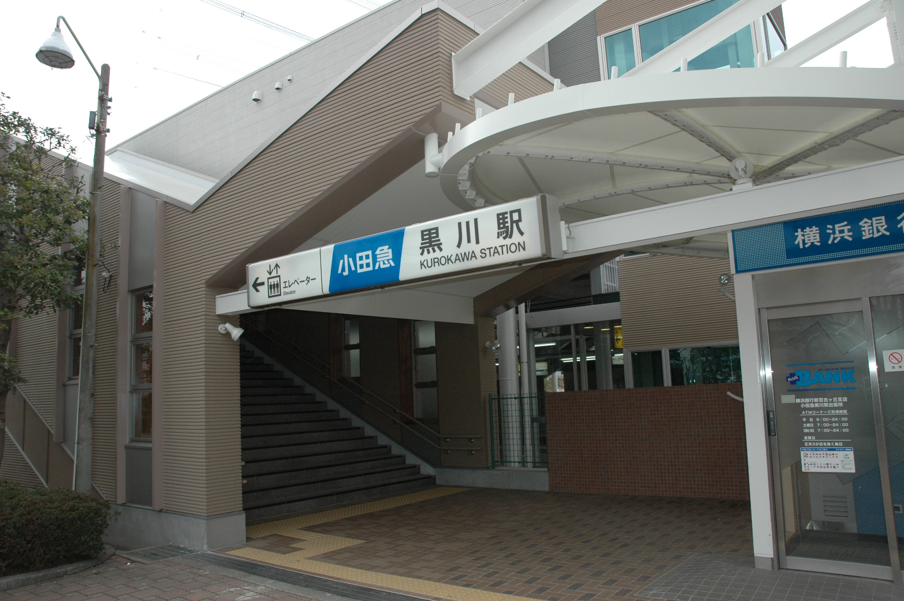 黒川駅は丘陵の高い所にあり、駅舎まで行くのが大変で、そこからさらに階段を使って改札まで行かなければならなかったが、南口・北口双方に、改札階へいくエレベータが設置されたので、とても楽になった。体の不自由な方にも、行動範囲を広げることになり、とても良いことだ。