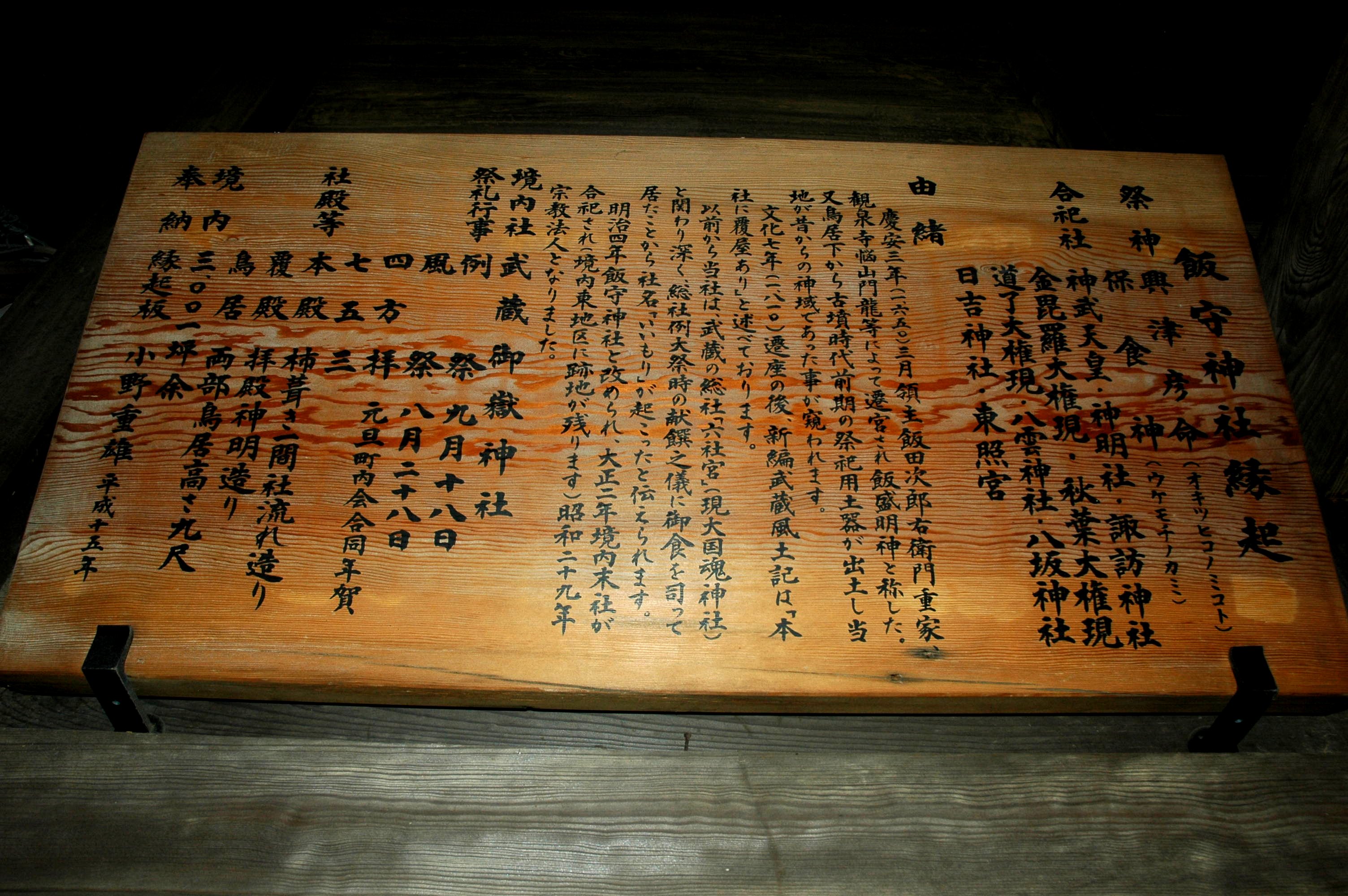 神社の拝殿(本殿)左上にある「飯守神社縁起」を、忠実にここに掲載させていただき、飯守神社を理解させていただく よすがとさせていただきます。