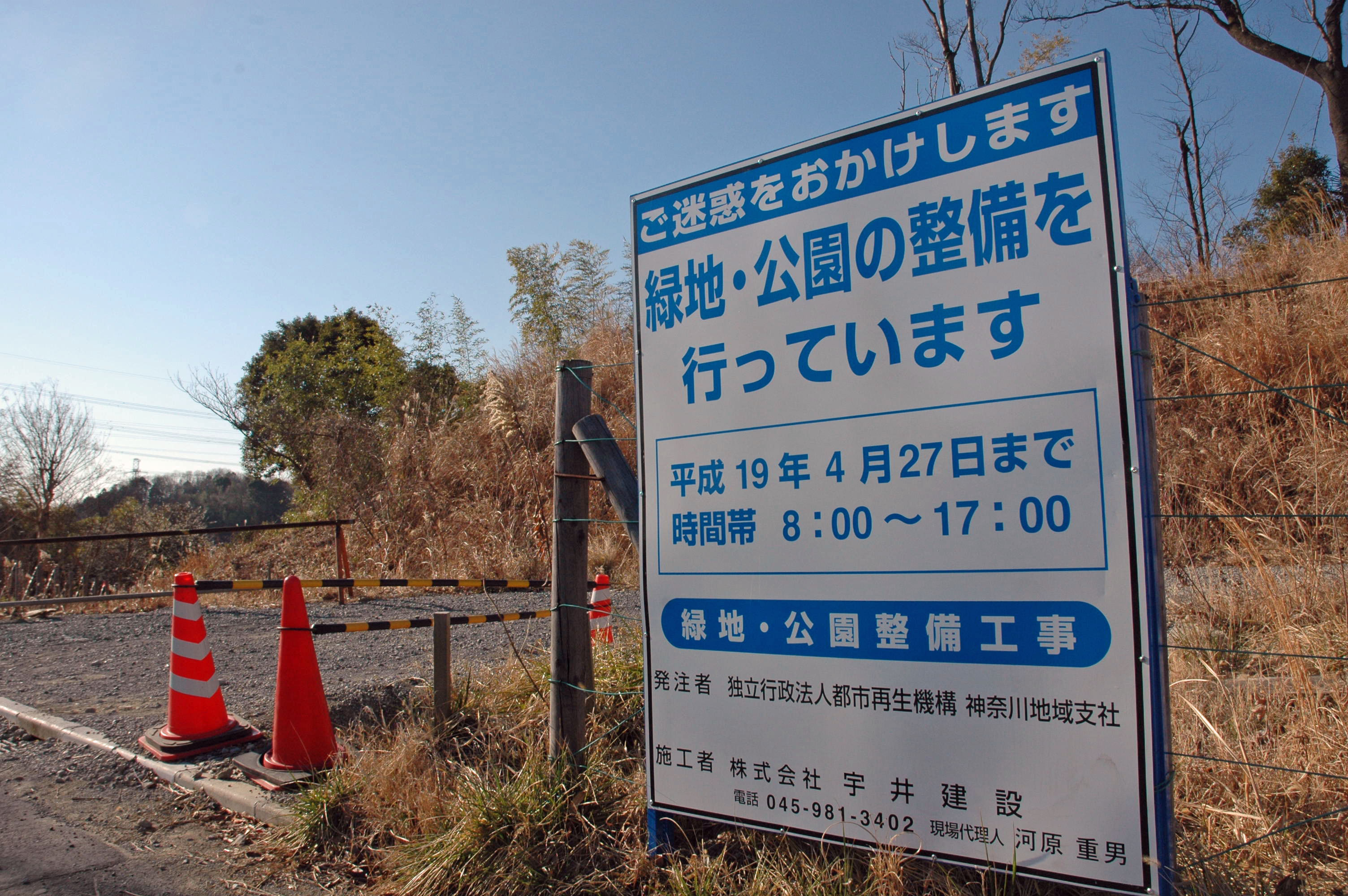 公園にある枯れた樹木の撤去や、石段などの補修、盛土の流失補修などの作業を年度を越えた平成19年4月27日までの期限で実施する計画。