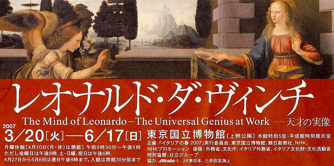 今、東京上野にある「東京国立博物館」で「レオナルド・ダ・ヴィンチ展」が開催されている。レオナルド・ダ・ヴィンチが20歳のころに製作されたかの有名な『受胎告知』が日本に初めてきて展示されている。