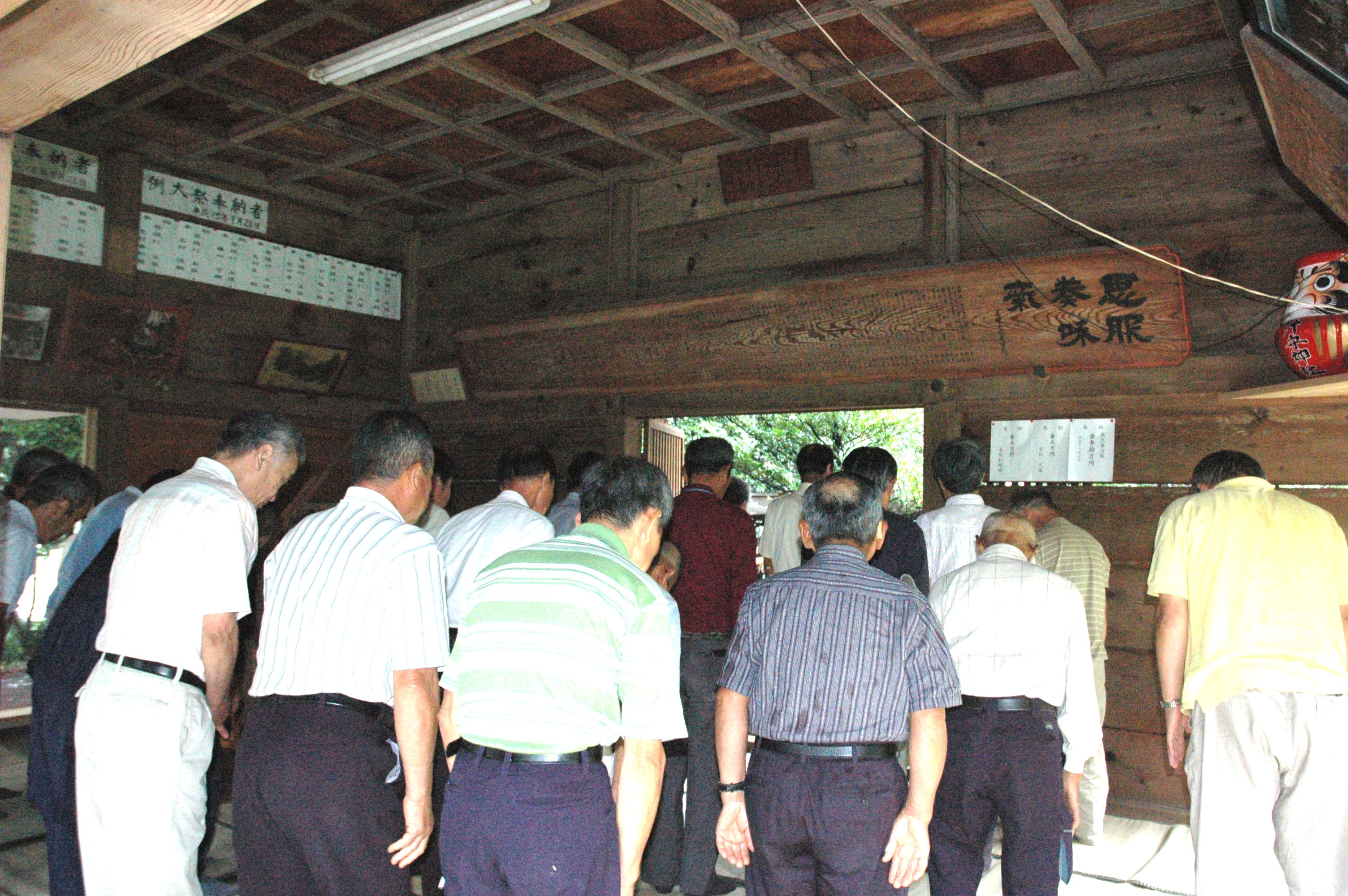 平成19年9月1日は、汁守神社の役員・汁守神社を護ってきた氏子たちが汁守神社に集まり、今年の秋の自然災害の少ないことと五穀豊穣を祈って風祭の礼拝が拝殿で厳かに行われた。