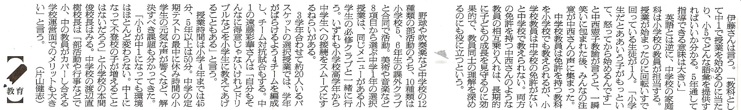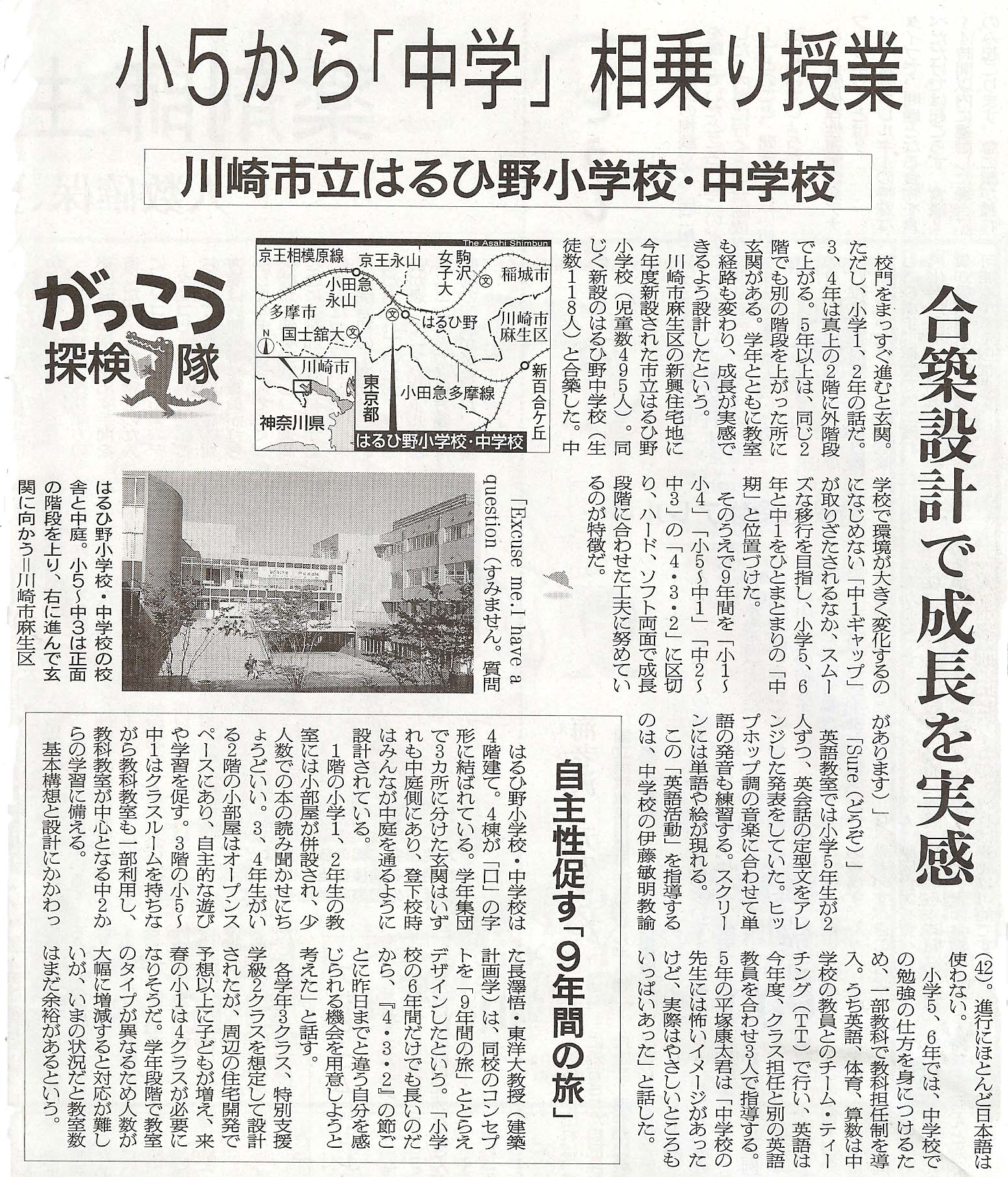 はるひ野小学校・中学校が、平成20年10月26日(日)付け朝日新聞 朝刊(全国版) がっこう探検隊で大きく紹介されました。