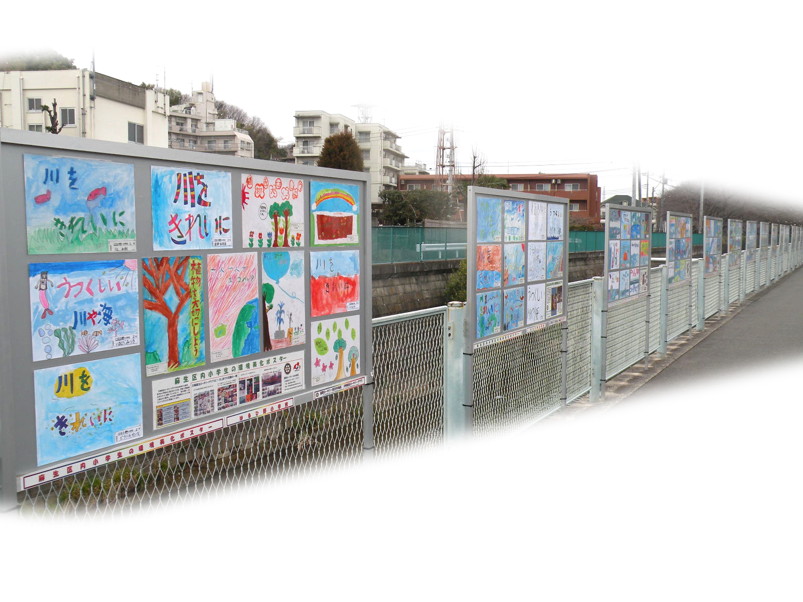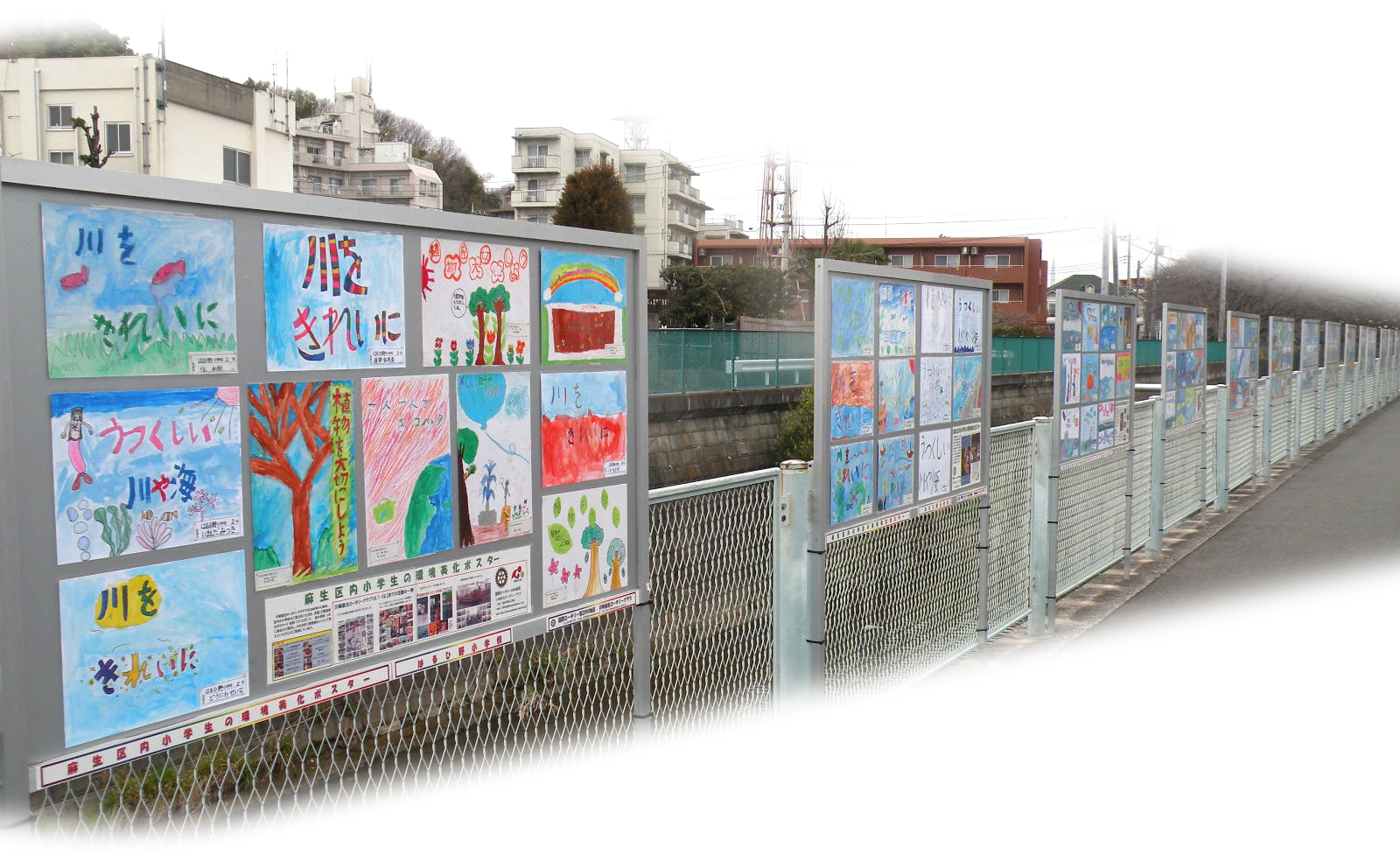 他に柿生小学校の5年生が描いたポスター 87枚、片平小学校4年生が描いたポスター 54枚の合計232枚のポスターが、麻生川に沿って掲示されている。