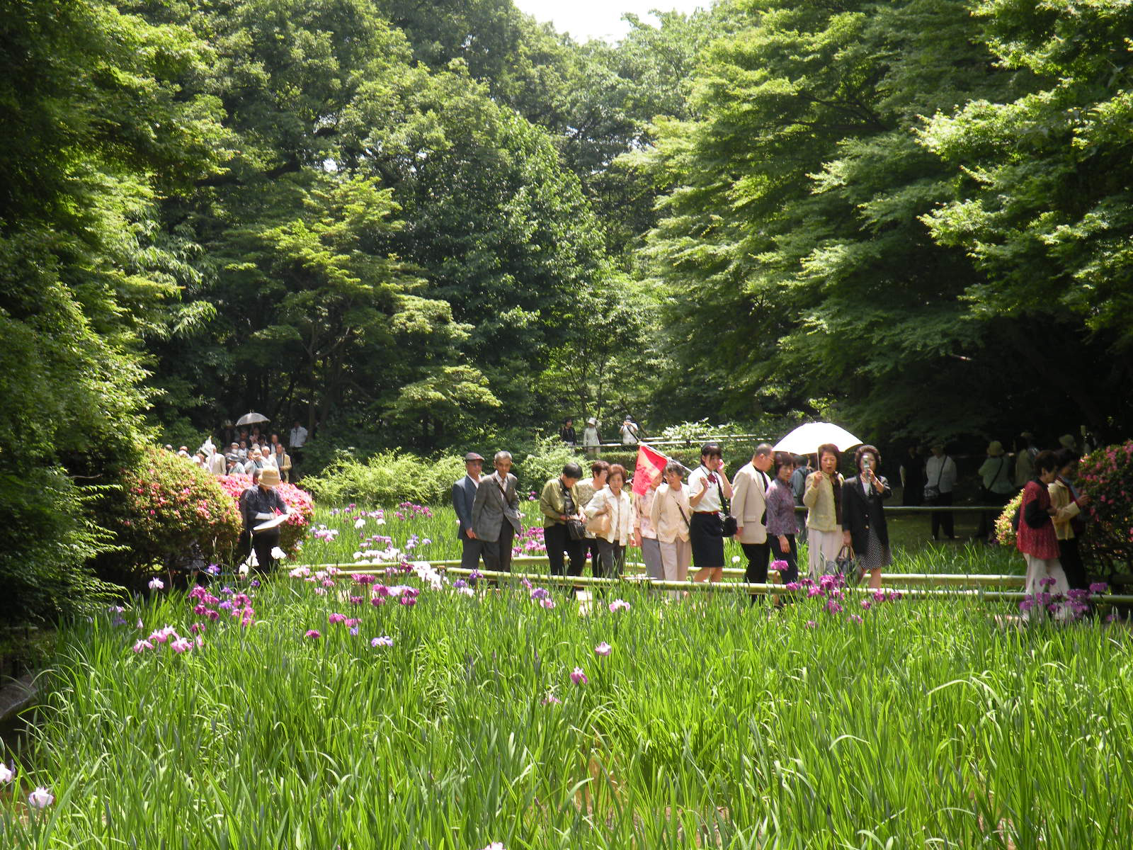 6月の初めだったため3−4分咲きの花菖蒲であったが、都心とは思えない武蔵野の面影を残す苑内、深い新緑の緑に包まれた静けさの中で、ひっそりと咲いていた。