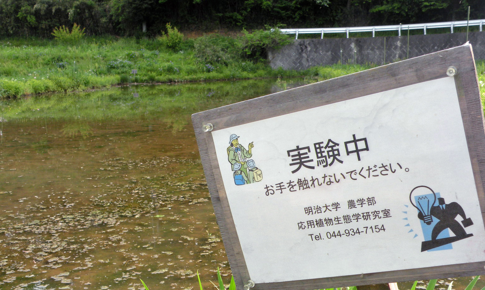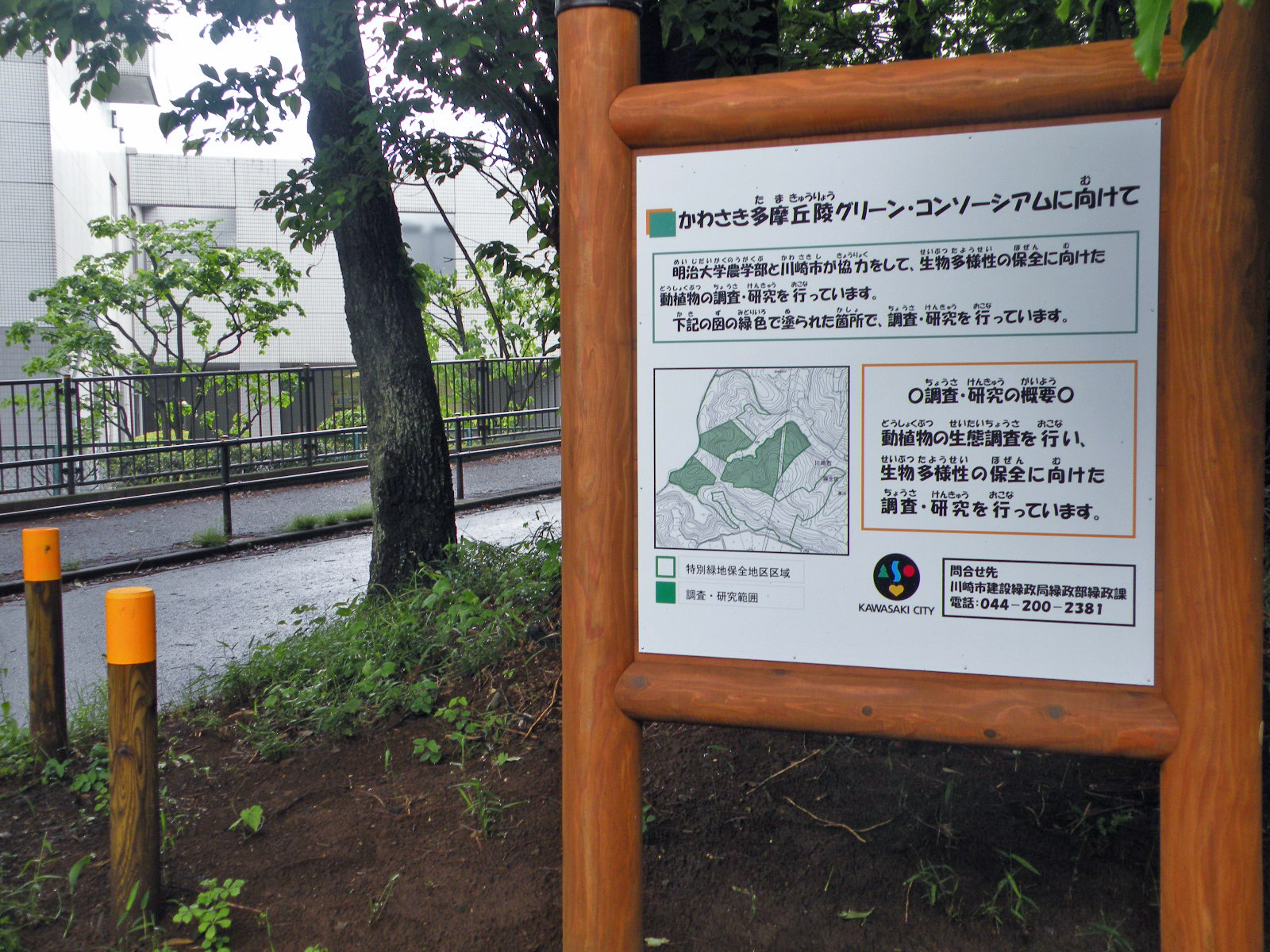 そこの開発が行われていない川崎市特別緑地保全地区のなかで、範囲を限定して調査・研究が行われているもので、明治大学農学部 応用植物生態学研究室の倉本 宣教授を中心とするグループが担当しています。