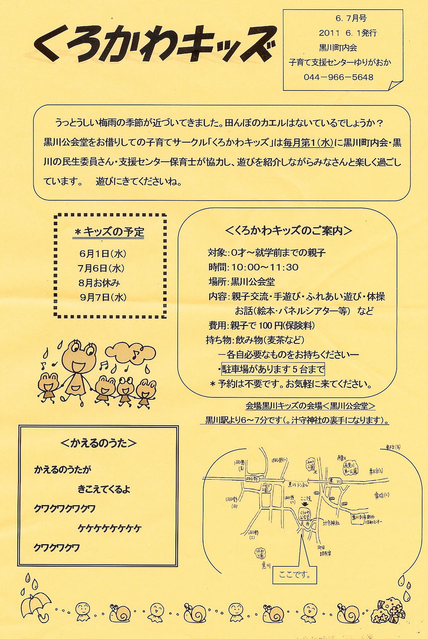 黒川地区のこども達を対象にした「子育て支援サークル」の一環として「第51回 くろかわキッズ」が7月6日(水)に黒川公会堂を会場にして開催されます。