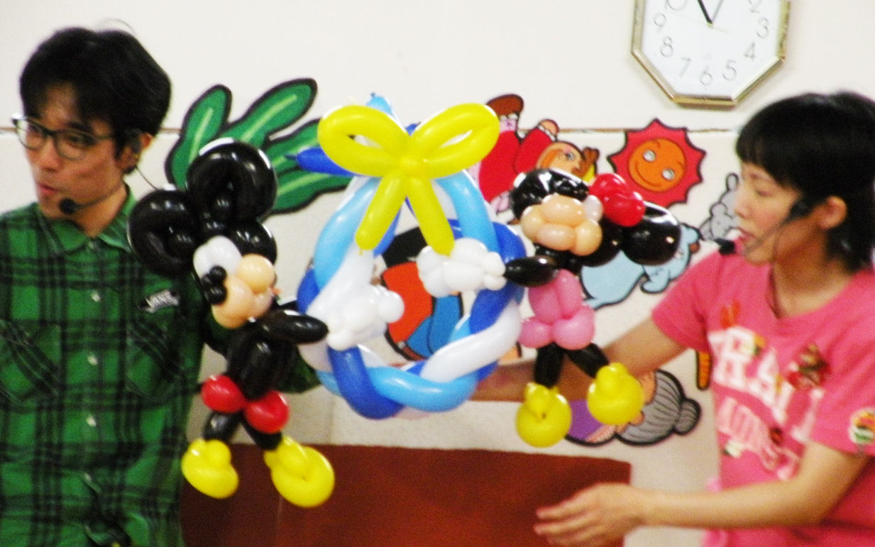 今年の「ハッピーメロディ」のお二人は、例年になく元気でコンビ仲もよく、次々と新しい趣向の演芸を繰り出して子どもたちの丸い目を引き付けていました。