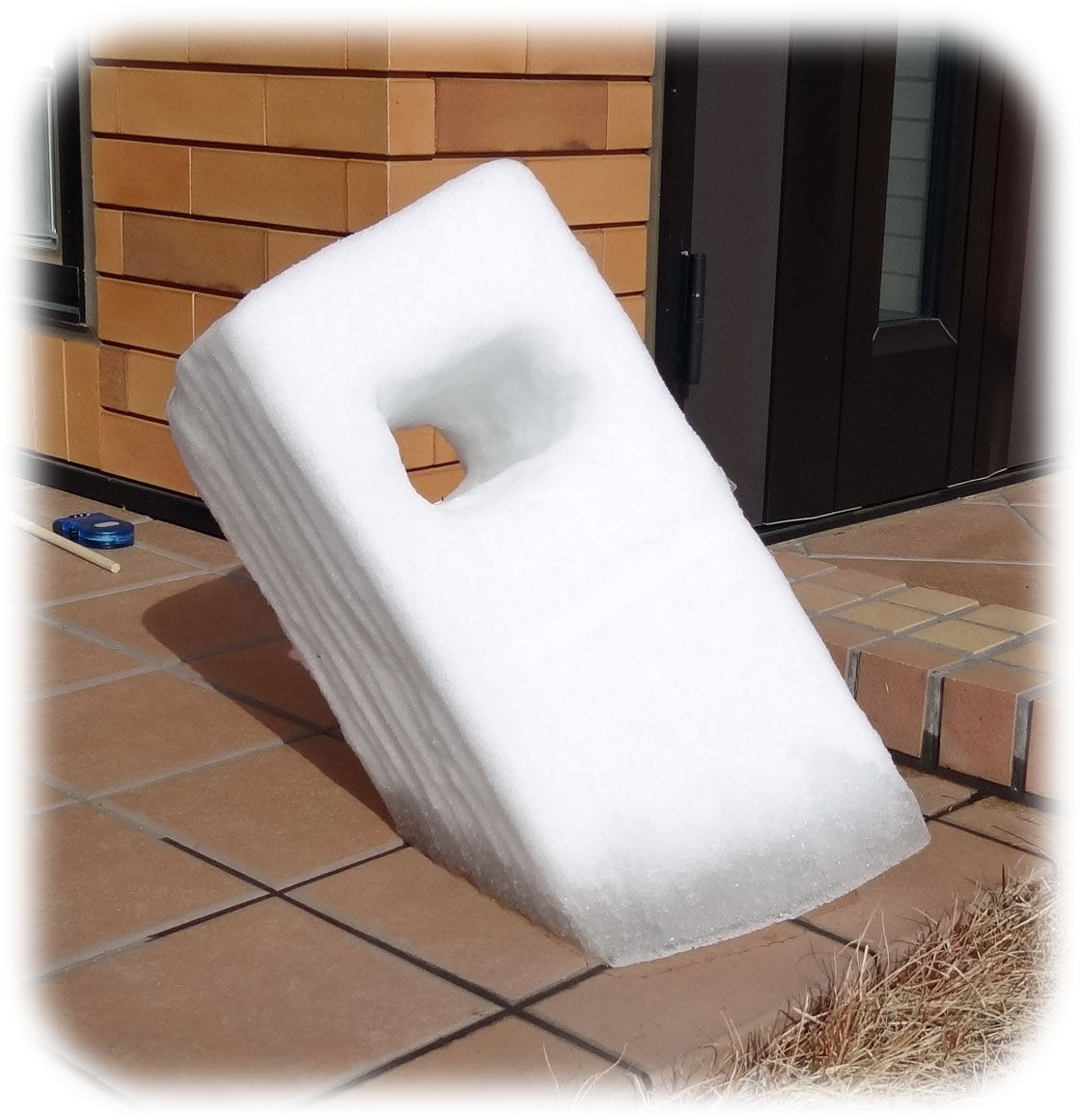 お正月に山形・米沢に行っていた孫が爺に雪を見せたいと 新鮮な四角い雪だるまを持ってきてくれた。