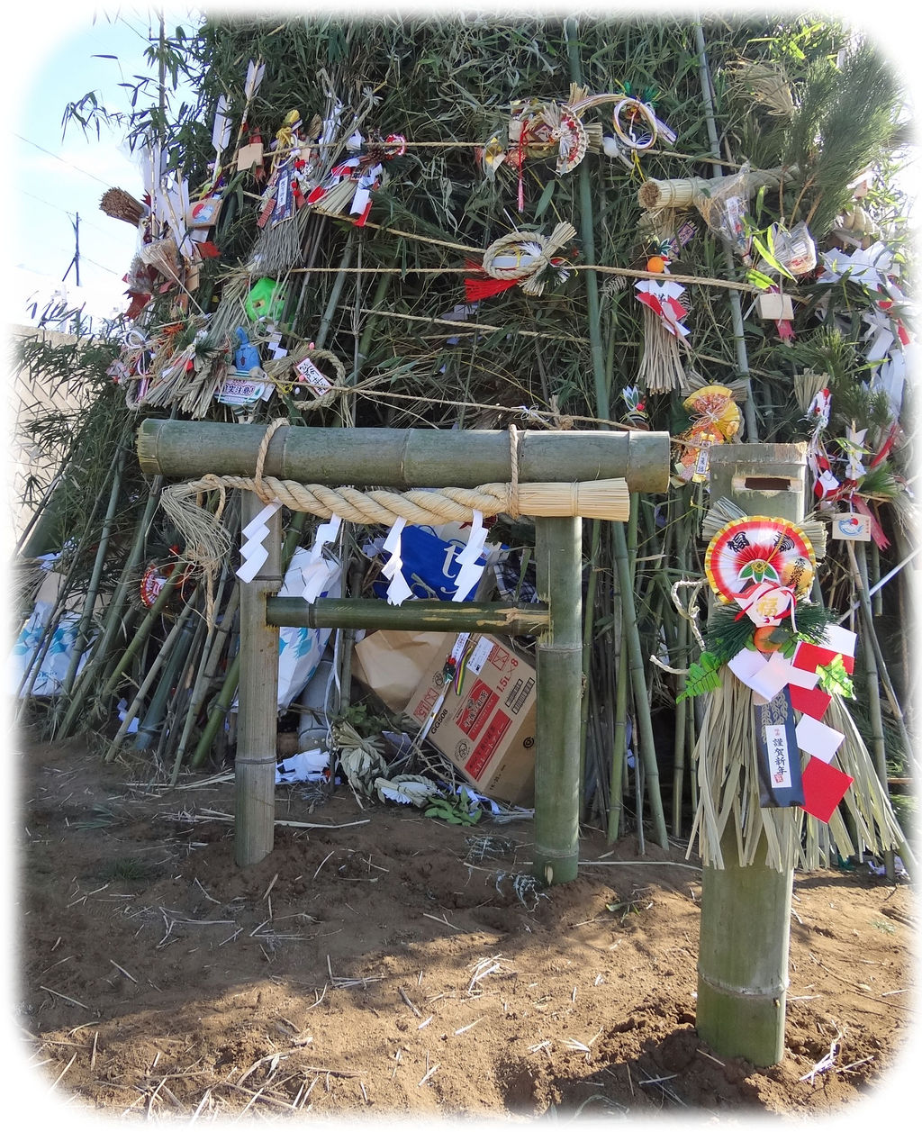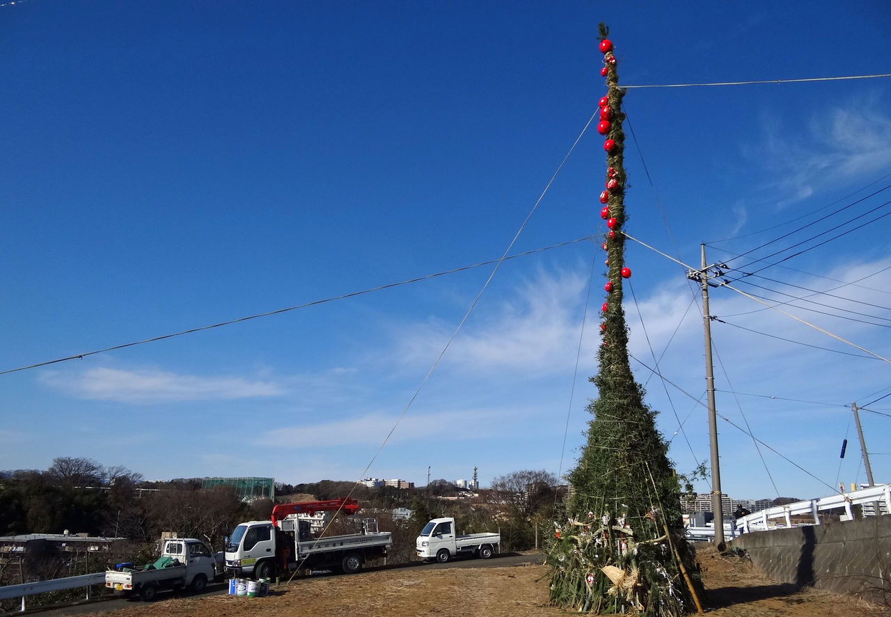 今年も川崎市では最大級と目される立派な「せいの神」(どんど焼き)が、黒川に二基 建立された。