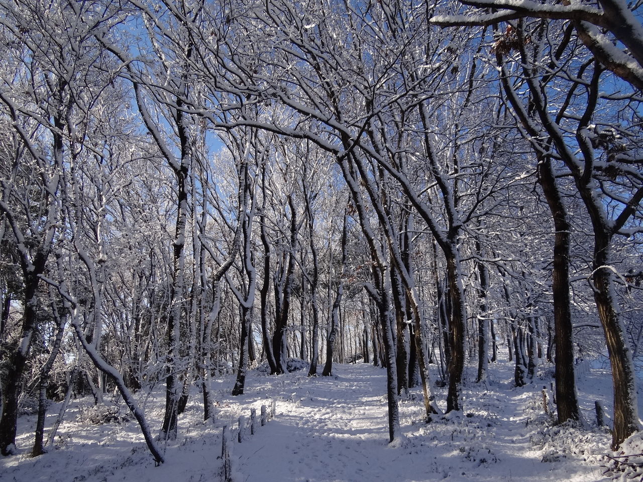 ほとんど毎日散策している「よこやまの道」も、一晩の雪で風景を一変させました。 (写真はすべてクリックすると画面一杯に拡大表示します。お試しあれ!)
