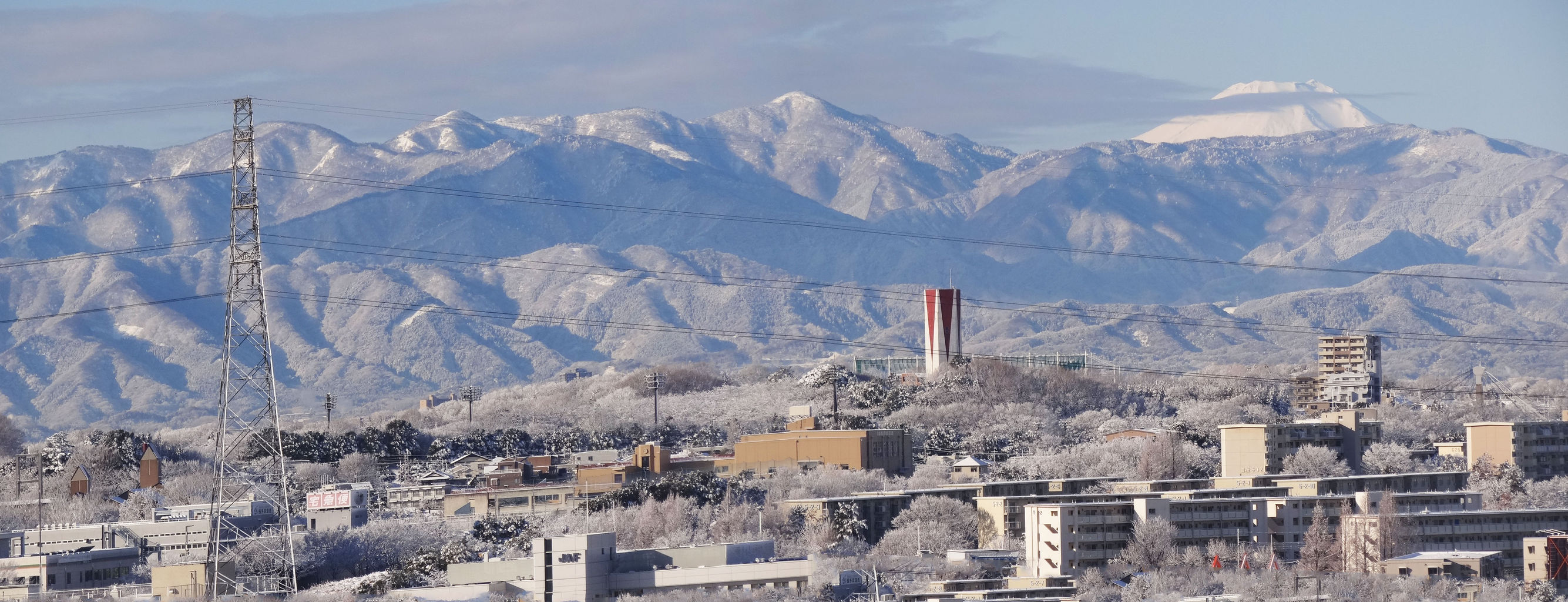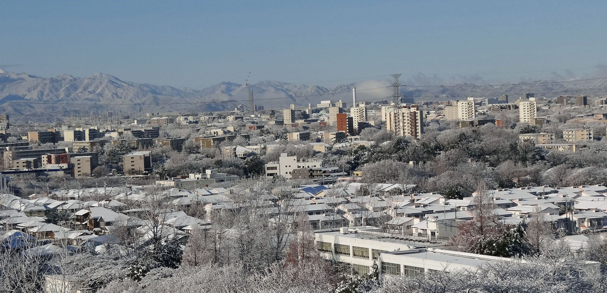 白一色と化した多摩の街並み