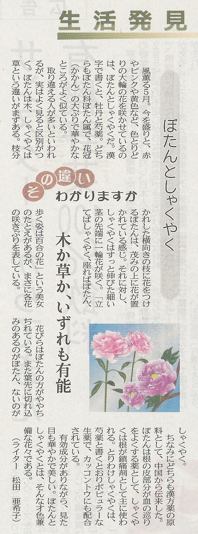 また、芍薬はまるで美しい女性が立っている姿のよう、牡丹は美しい女性が座っているよう、百合は美しい女性が歩く姿のようだなど、諸説ある。