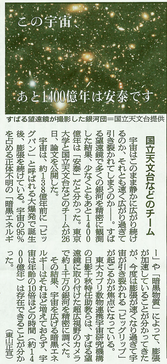 東大の教授らが すばる望遠鏡を使い約1000万個の銀河を精密に調べた結果、