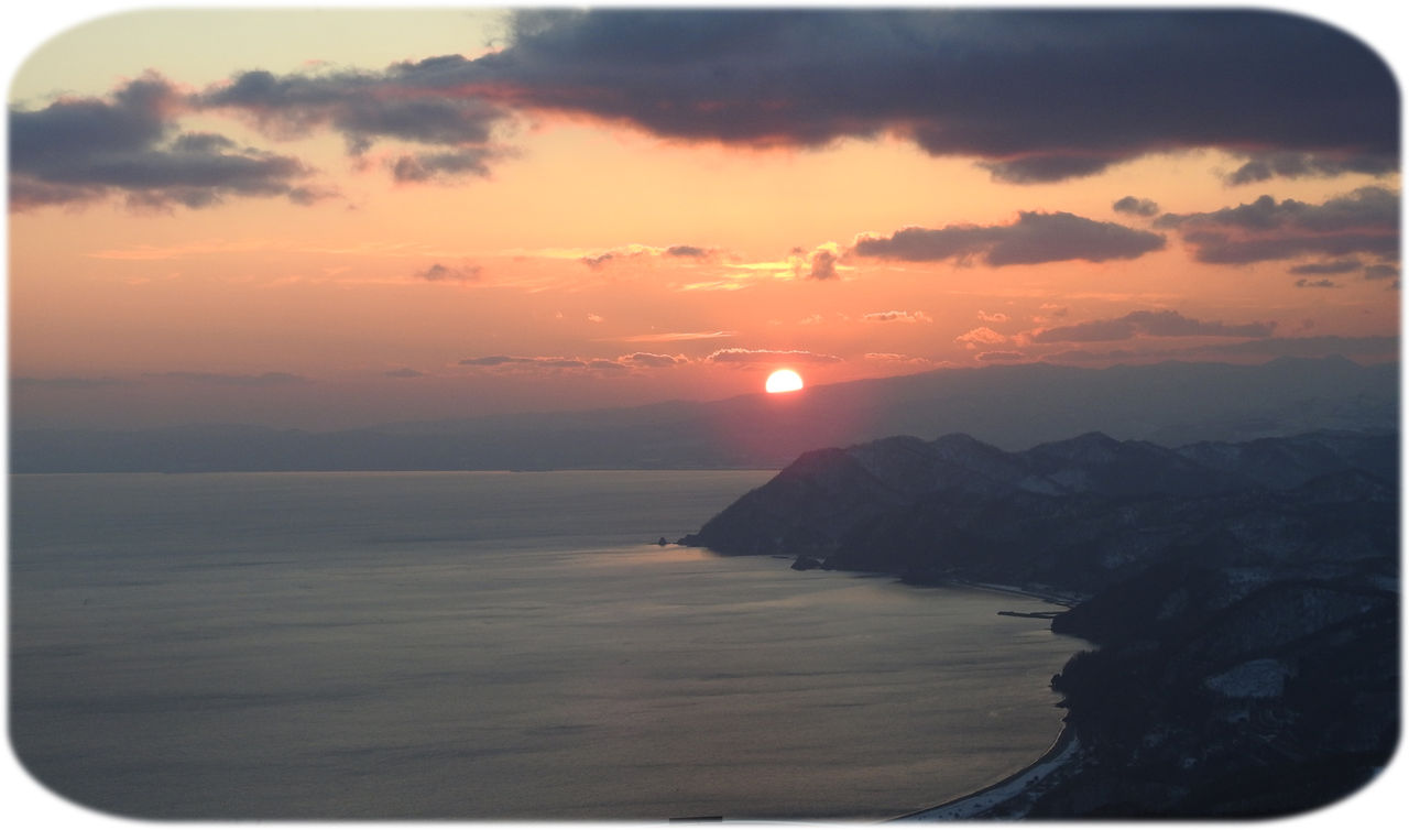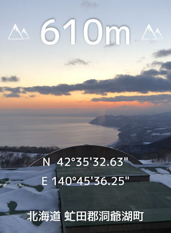 ホテルが海抜610mという山頂に立っており 窓の外には内浦湾の夕陽を望む