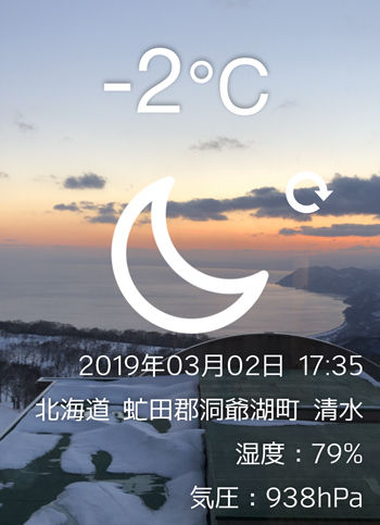 ホテルの部屋で測定した高度(海抜)と夕方5時半の外気温