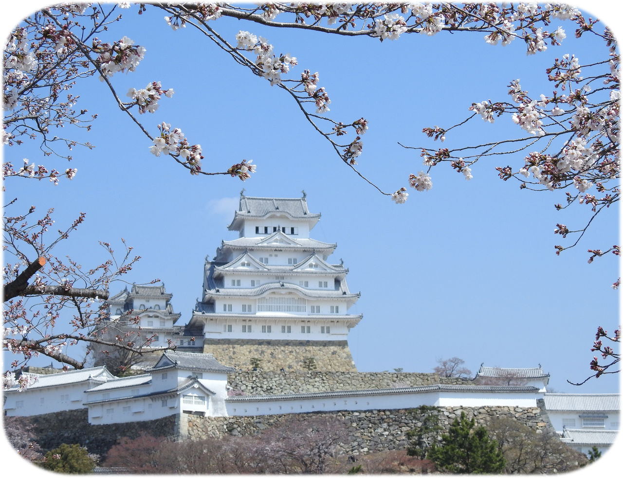 雲一つない青空の下、五分咲きと思われる桜と白鷺城と呼ばれる姫路城は 圧巻の美しさを見せてくれました。
