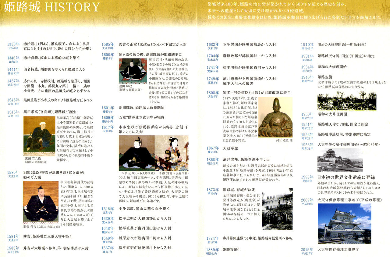 築城以来400年、姫路の地に砦(とりで)が築かれてから600年を超える歴史を刻む姫路城は わたし達日本人の誇りさえ感じさせてくれます。