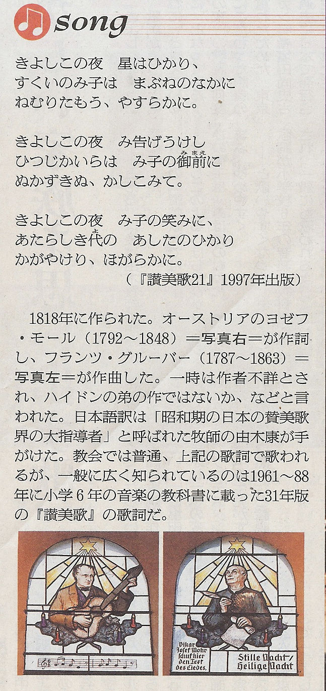 朝日新聞 beの song一面に『うたの旅人 発端は飢えたネズミ 賛美歌「きよしこの夜」』の特集記事が掲載されていたことがありました。