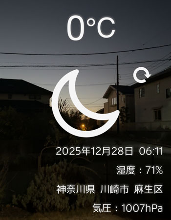 冬至が過ぎた28日の早朝6時11分の外気温が 0℃を示していました。